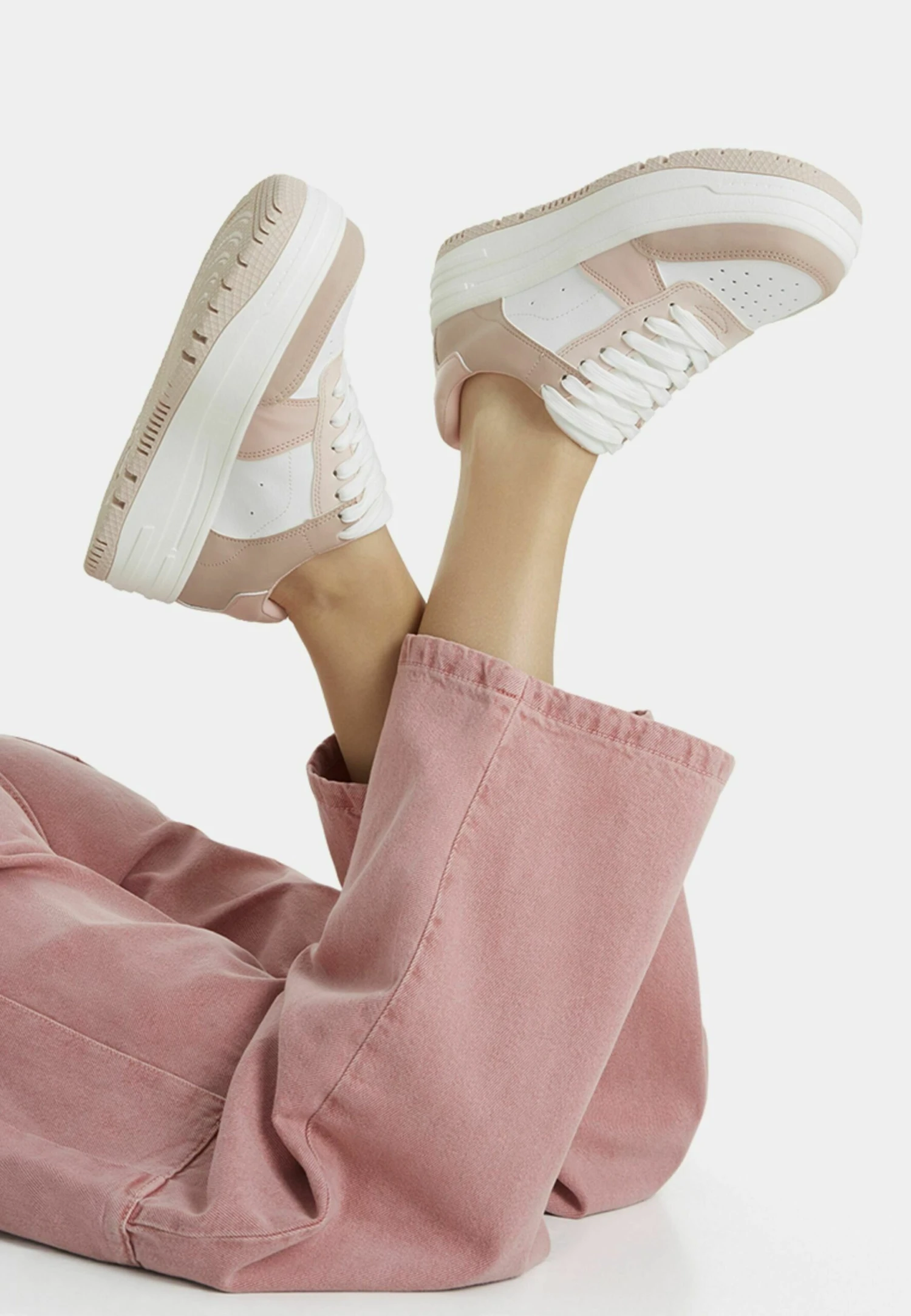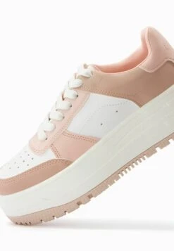 BERSHKA Contrast Platform – Sneakers Laag – Pink